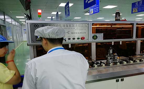 具體:將編織扭成2股,其中1股扭好的編織包銅箔,1股編織反折于芯線,線材加工再脫鋁箔,最后去防折斷絲,取線出來完成。